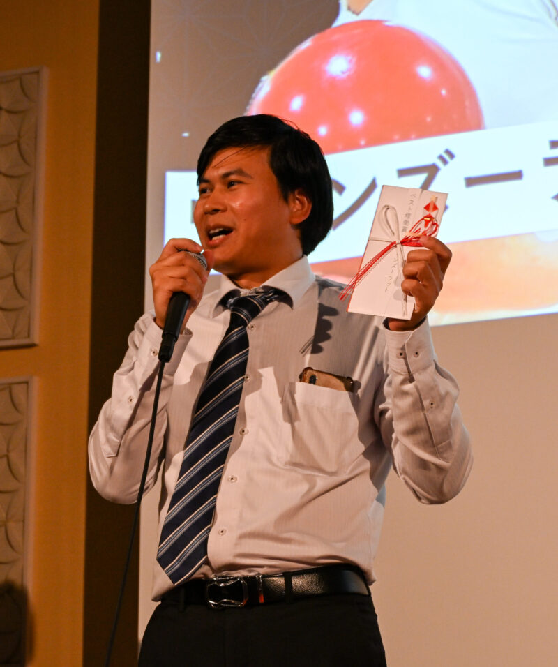 「この度は社長賞という栄誉ある賞をいただき、ありがとうございます。競技者として結果を追い求めるだけでなく、謙虚さを忘れず、人としても成長していきたいと考えています。“倫武両道”の精神で、会社の発展に貢献してまいります。」
