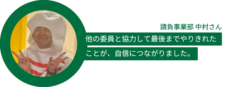 他の委員と協力して、最後までやりきれたことが自信につながりました。「楽しかった!」と多くの人に声をかけてもらえて、実行委員として誇らしい気持ちです。