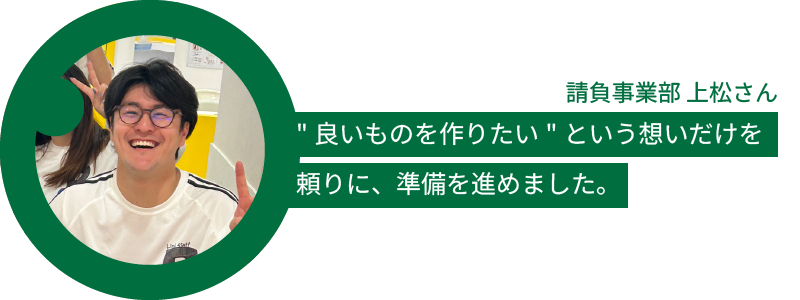 右も左もわからない中で、”良いものを作りたい“という想いだけを頼りに準備を進めました。