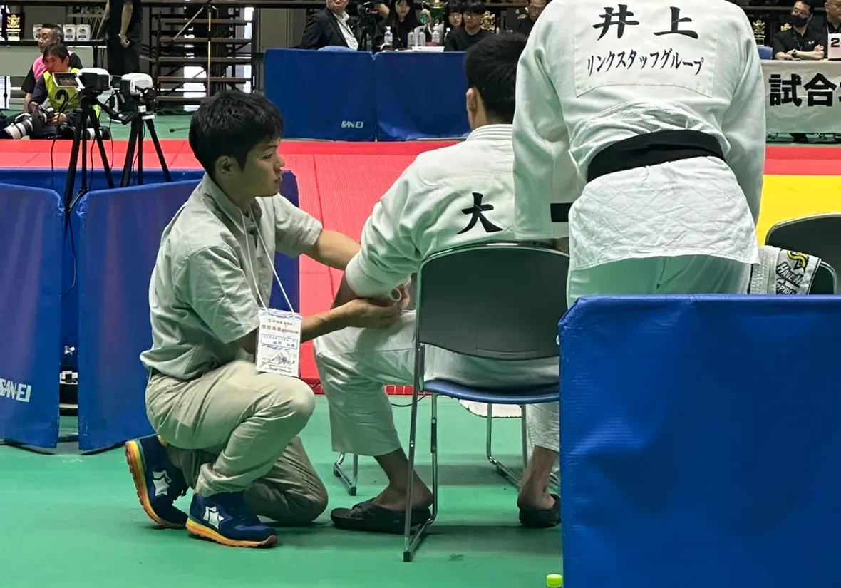 普段は経営戦略室で会社を支えていますが、この日はトレーナーとして選手を支えた 城間さん
