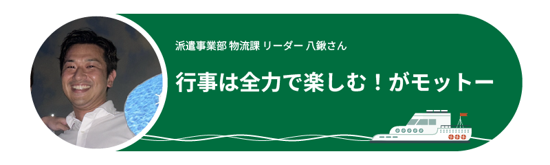 会社イベントは全力で楽しむ!!がモットーでもあり、自分だけでなく全員で楽しめるようにすることを大切にしています。