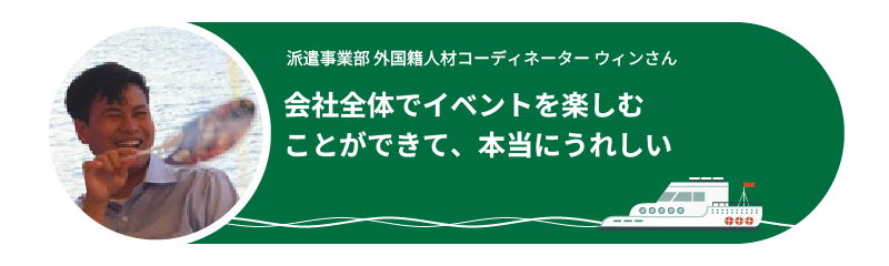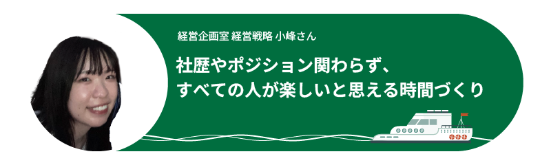 クルーズ船への乗船自体も初めてでしたし、会社全体でイベントを楽しむことができたことが本当にうれしいです。