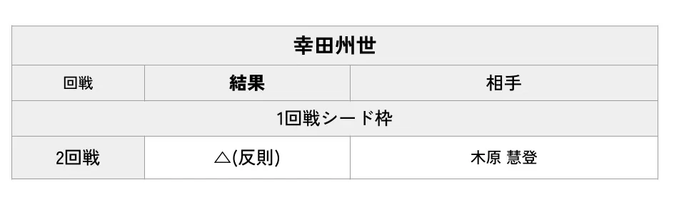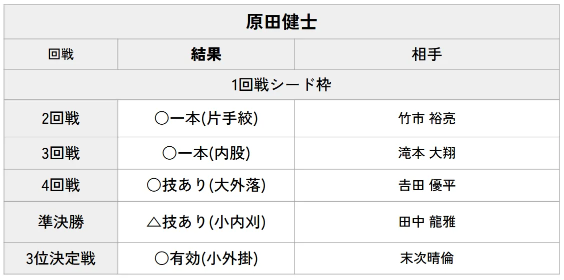 主将 幸田州世選手が初戦敗退、原田健士選手が 3位に入賞しました。