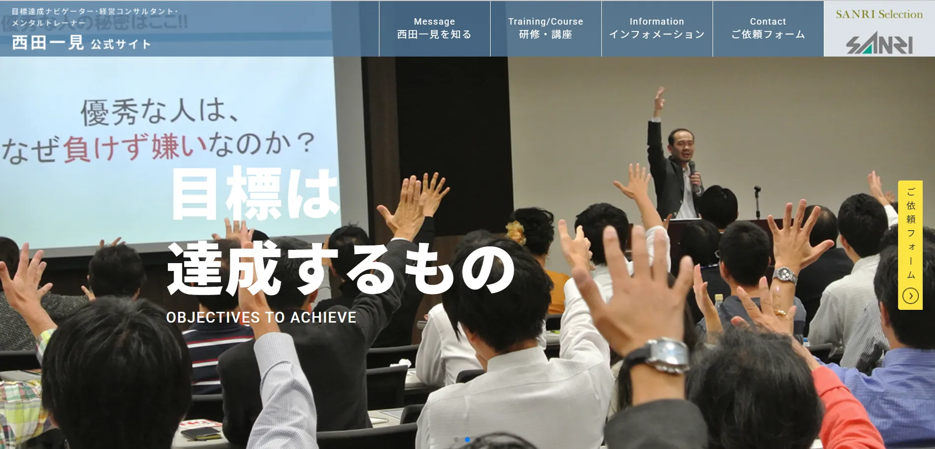 西田先生の指導実績には、ビジネスパーソンだけでなく、プロスポーツ選手やアスリート、教育分野の指導者なども含まれ、目標達成支援などを長く手掛けてきた実績があります。